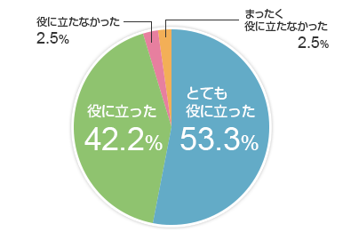 「無料保険相談が役に立ったかどうか」をお聞きしたところ、95%以上のお客様から「役に立った」との回答をいただきました。