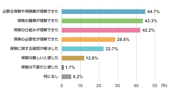 無料保険相談を実施後の感想をお聞きしたこところ、「保険への理解が深まった」との回答を多数いただきました。