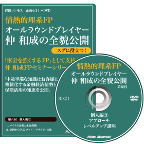 このセミナーDVDセットは、個人のお客様に対する、保険の貯蓄機能の優位性解説を軸とした、アプローチとプレゼンテーションの技術と、それを補完する周辺知識の使い方を公開する内容です。
