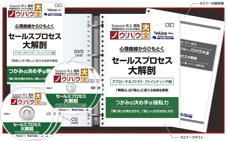この教材は「つかみ」の達人・井上健哉氏が、アプローチとファクト・ファインディング=ヒアリングにおいて「買う側の心理をつかむ技術」をお届けするものです。