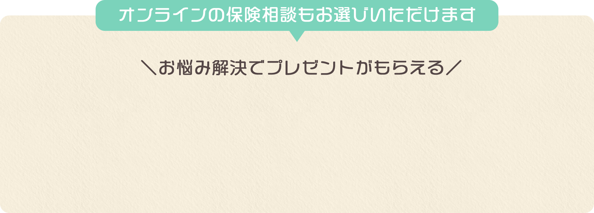 ※資料を使ってご提案をさせていただくため、玄関先などでのご面談はご遠慮ください。 - ・【無料】保険相談を第一の目的ではなく、明らかにキャンペーン特典を目的としたお申込み、またはそのように当社が判断した場合