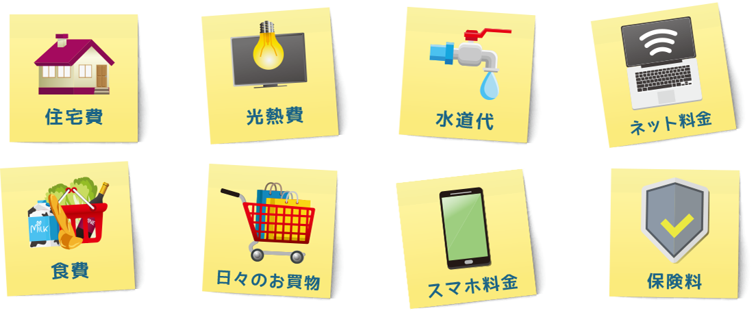• ・住居費、光熱費、携帯代などの固定費の見直しは必須!