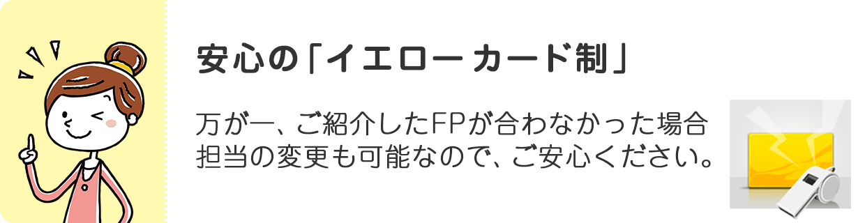 担当するFPによってはNISAやiDeCo、生命保険や損害保険だけでなく、税金や相続など多岐にわたるアドバイスができる場合があります。お申込み時にカスタマーサービスにお問合せください。