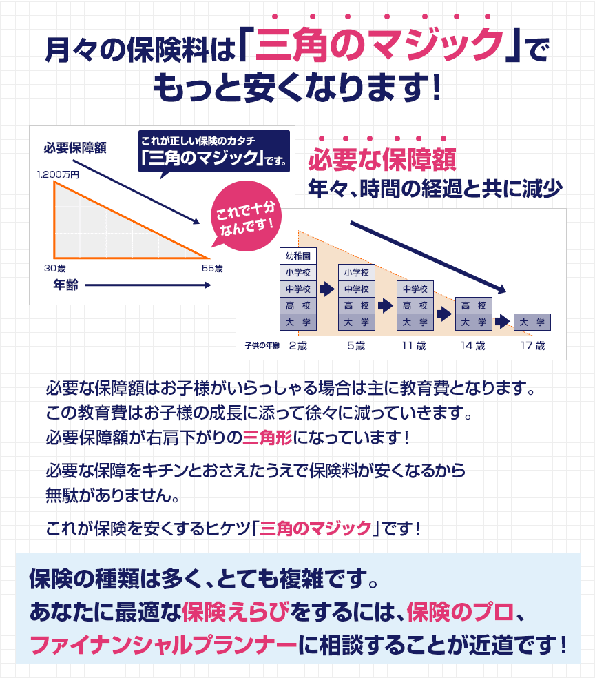 もうパンフレットや比較サイトを読みあさる必要はありません。メンドウなところは、ぜんぶ私たちFPに任せてください!