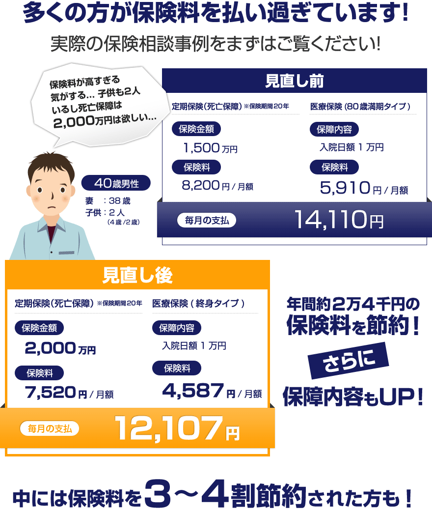 ご利用者の中には、毎月の支払いを節約した上で、保障内容もアップ!なんていう方も決して珍しくないんです。